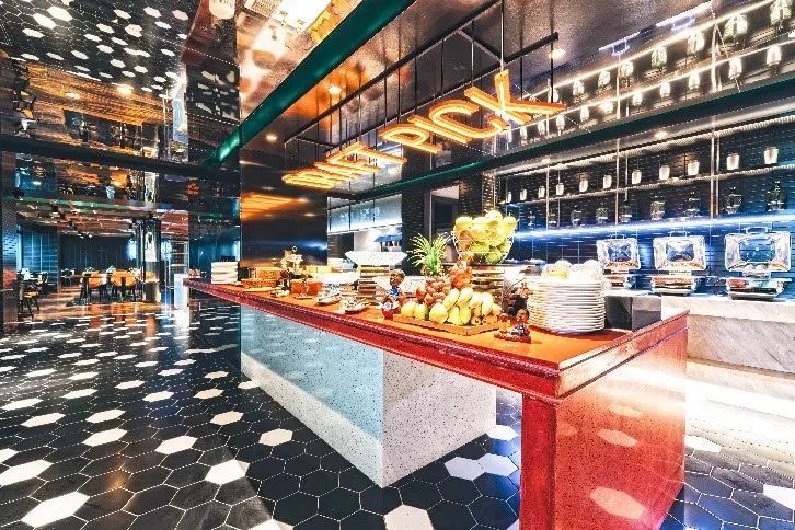 这是亚朵第六家正式开业的IP酒店,整个大堂公共区域一半面积被设计成了长14米、宽15米的篮球场地,并配3.05米篮球框、室内体育馆才有的升降LED屏,直接来一场篮球赛不是问题。店一层还有篮球博物馆,不仅有科比等球星语录T恤,还有众多个人收藏家展示的艾弗森、姚明、奥尼尔等球星签名版球衣及战靴,还可以现场试穿购买到限量版球鞋。而入驻的每层客房都有不同的球队主题,每一间都匹配经典球衣号码,是球迷不可错过的好去处。