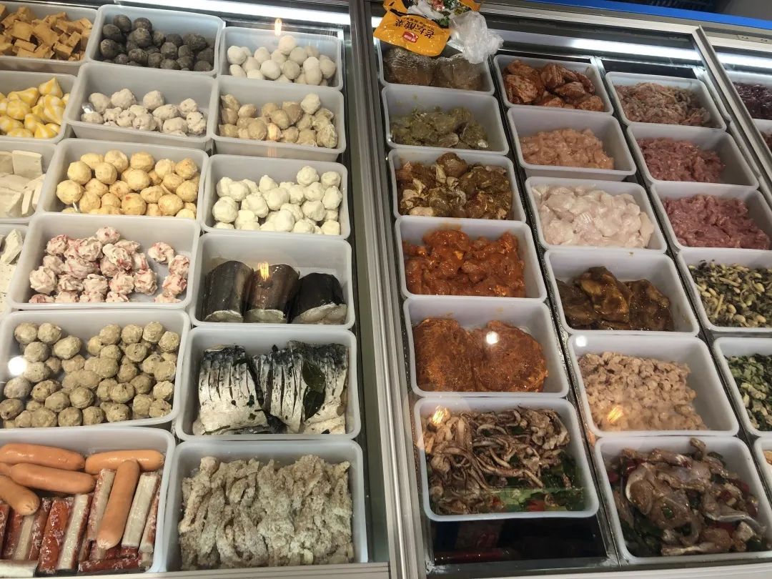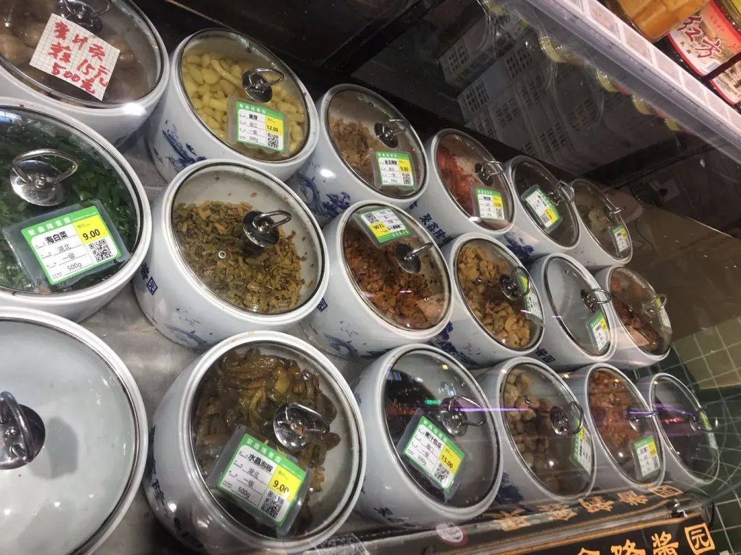 二楼主要出售豆制品、半成品、熟食等。在上海没有小吃和熟食的菜市场,不能算是一间完整的菜市场。炎热的天气,能在菜市场快手准备好一桌菜才是真正地解放双手。陶瓷缸中的腌制小菜、火锅烧烤必备的丸子,还有特色新鲜腌制的大排、鱿鱼、牛蛙……现包现卖的菜肉大馄饨,上海人的讲究和精细全体现在摊位里的平易近人中了。