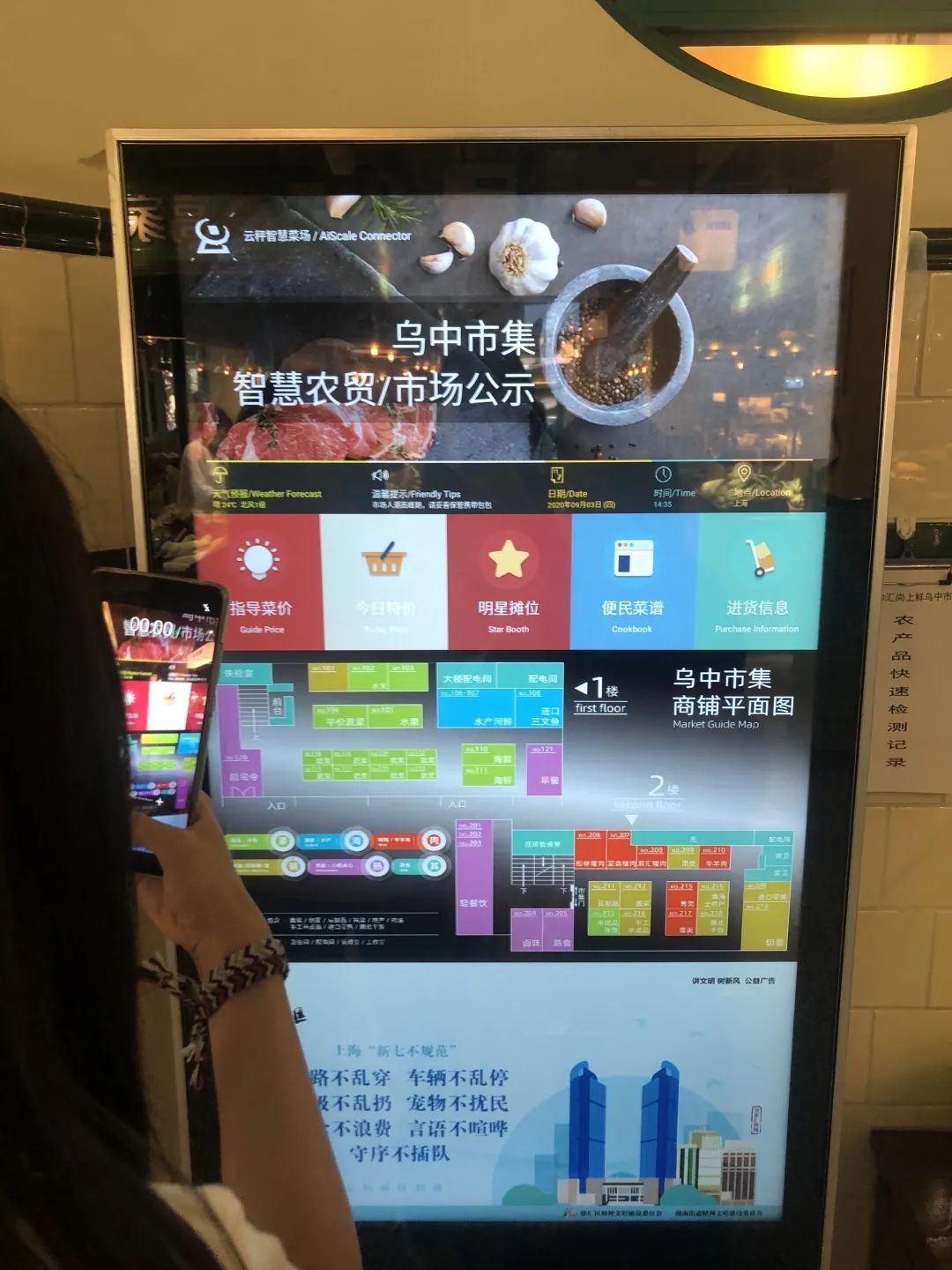 认真逛市集会发现,它不仅在外观上颠覆了菜市场的传统模样,还对硬件设施进行了优化。通过大数据智能化管理系统的引入,在“保供”的同时实现“稳价”。除了一楼设置了智能引导机,二楼的电视屏幕上也会滚动播出今日菜价的涨幅情况。猪肉摊老板说道:“虽然进场租金稍微贵了些,但整体生意也比往常好很多。”