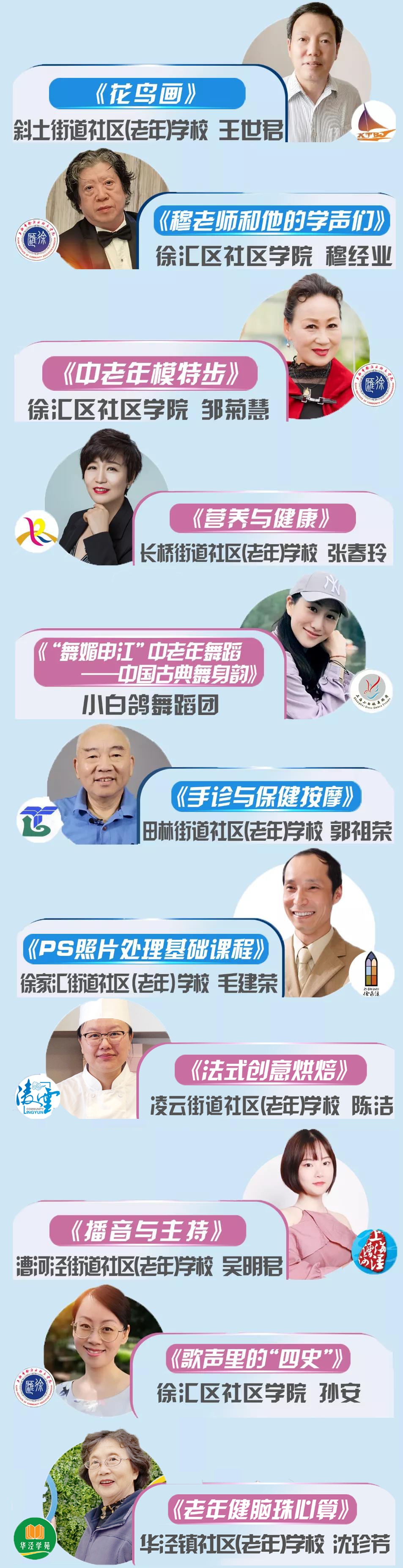2020年秋季学期,徐汇区社区学院联合徐汇区老年大学、各街道社区(老年)学校、区域高校老年大学、社会学习点等持续推进“云课”建设,推动优质教育资源共享,经过精心组织、认真筹备,第一期11门直播课程隆重上线啦!