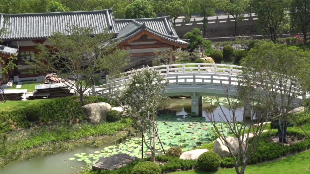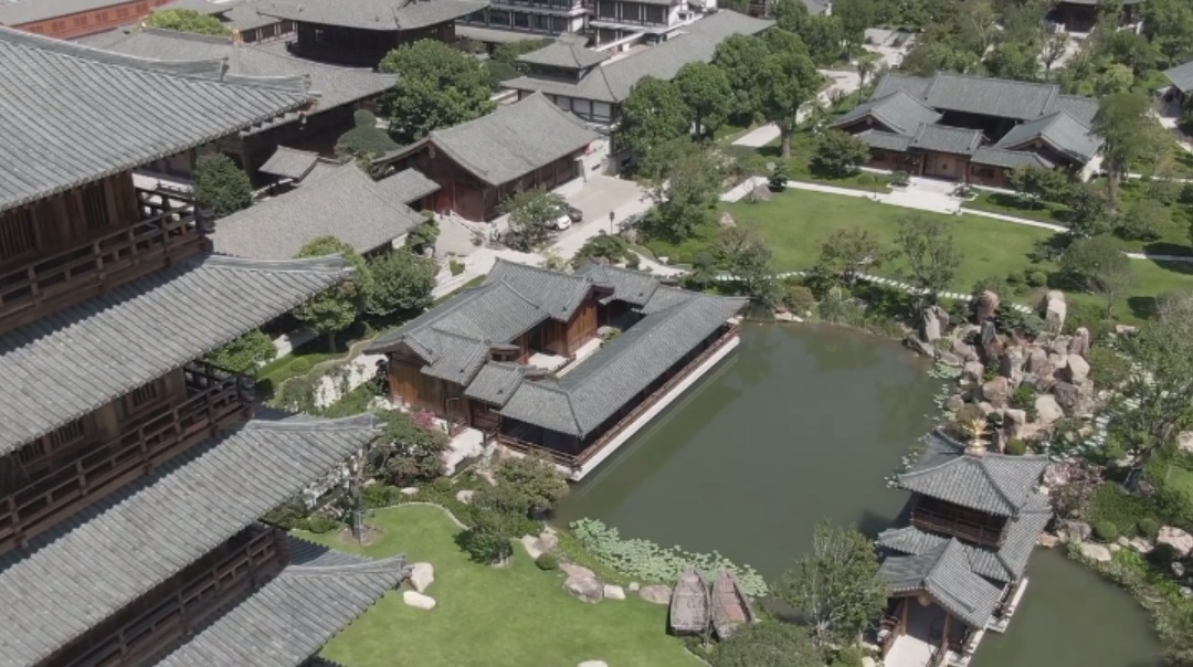 祇园占地近40亩,建筑面积2976.12平方米,建有金塔、佛香阁、松涛轩、闻钟水榭、廊桥、花雨亭、北门、东门等建筑。祇园从2012年开始设计施工,历经数年精心打磨,一座典雅秀丽、充满禅意的木结构建筑及唐式园林即将迎来竣工验收,向世人展露其别具一格的唐式园林风采。
