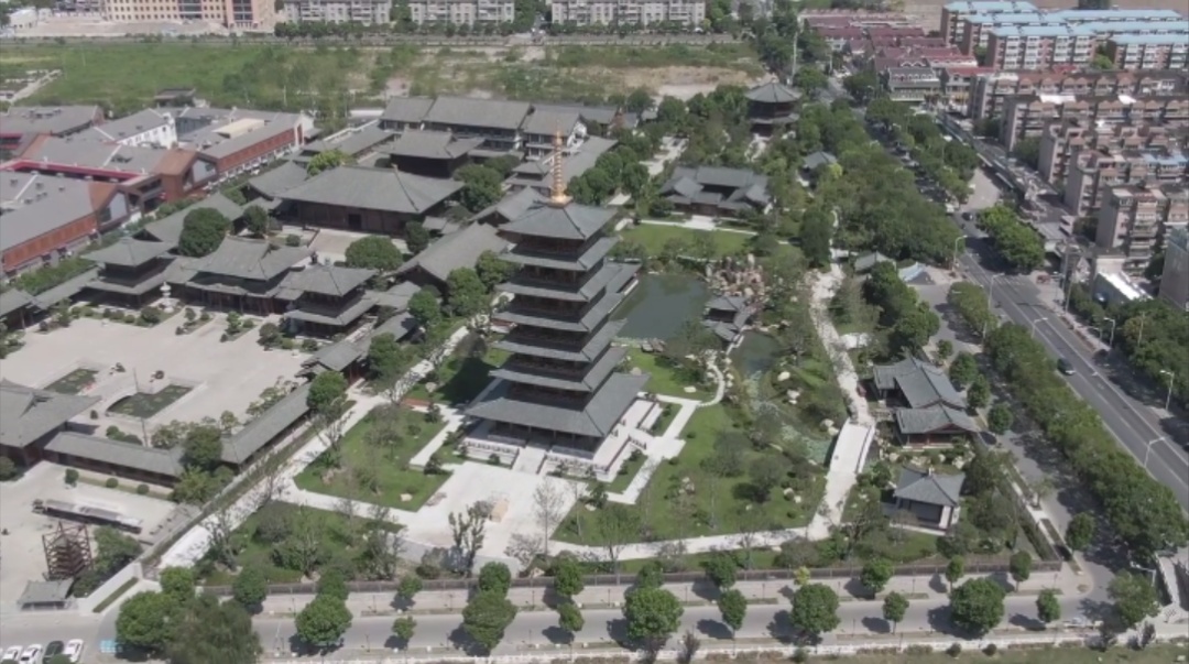 其中,袛园金塔是中国乃至世界近千年来第一座新建的7层纯木结构仿唐风格楼阁式高层建筑。