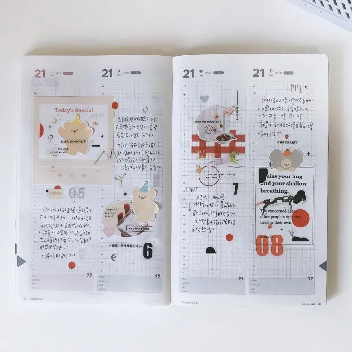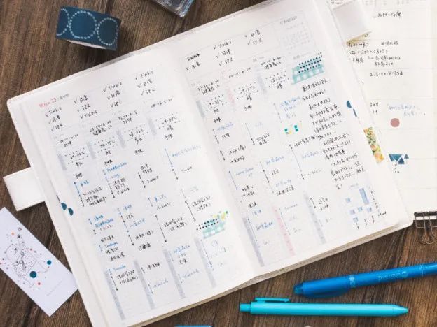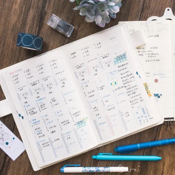 相较于TO DO LIST,周计划本更复杂一点,也有更多的可操作性。除了记录每天的学习和生活,有较多空间可以进行贴图、排版、画画,以丰富自己的版面,更像是一个小日记本。