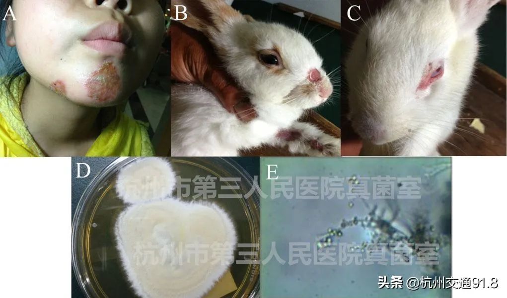 须癣毛癣菌经常出现在人的趾缝和胡须边缘,重点在面部和头部。有时真菌也会潜伏在猫和狗等动物的身上,但是更常见的还是在兔子身上。