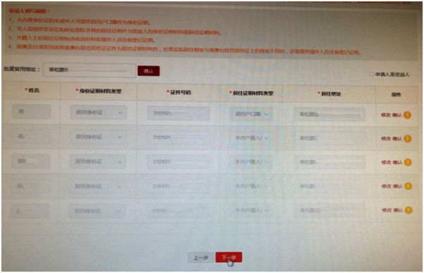 在“批量复用地址”栏内输入申请地址并确认,在每个受益人信息后点击“复用地址”进行核验