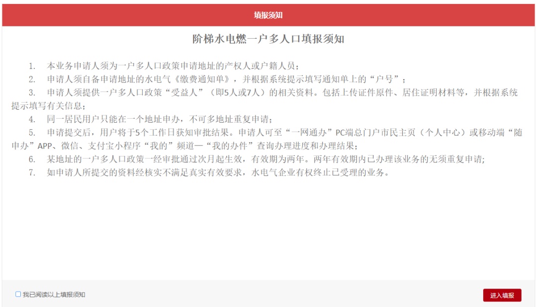 查看须知,勾选“我已阅读以上填报须知”,点击“进入填报”