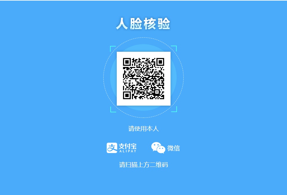 页面跳入手机扫码界面,申请人手机支付宝或微信进行人脸识别