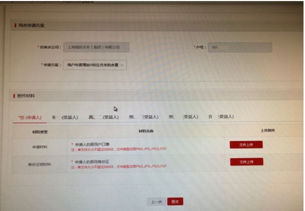 添加附件材料页,有申请人、受益人两类。根据要求上传图片