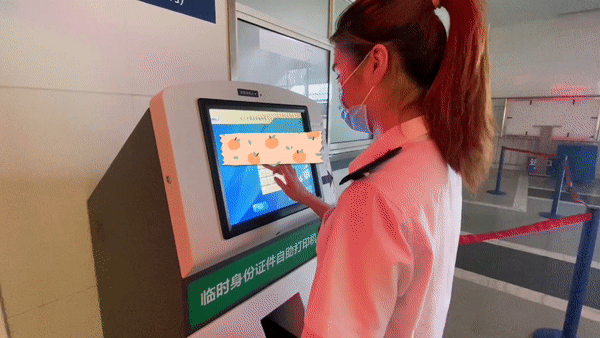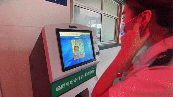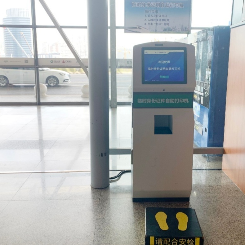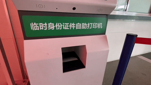 各大客站都有像这样的临时身份证明自助打印机,设有醒目标识。