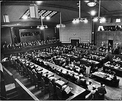 远东国际军事法庭,英文是International Military Tribunal for the Far East,设在东京谷山区的前陆军士官学校,二战的时候这里是陆军省的军部大厦,是军部和参谋本部组成的大本营的所在。远东国际军事法庭举行的审判后来就被称为东京审判。法庭审判的对象是被列为甲级战犯的东条英机、小矶国昭、广田弘毅、东乡德茂、梅津美治郎等二十六名战犯。总法官是澳大利亚人卫勃,法官团成员还有来自美国、中国、英国、苏联、法国、加拿大、荷兰、新西兰、印度、菲律宾,共十一个国家组成。