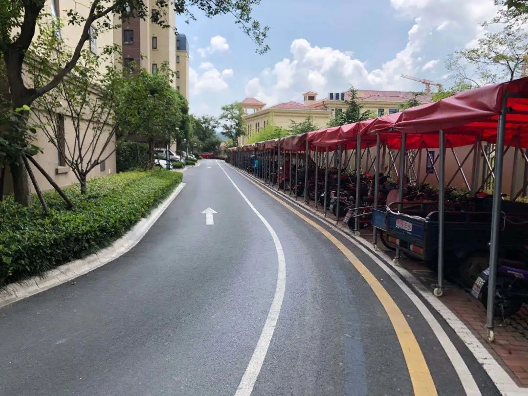 增加非机动停车棚刻不容缓,通过对小区空余位置的考察,小区物业决定临时使用小区西侧的机动车位,新建可移动式非机动停车棚,新增300余个车位。搭建完成后的非机动车“新居”不仅满足了居民停放需求,又兼具可随时移动的灵活性,方便随时根据车辆实际停放情况进行调整。