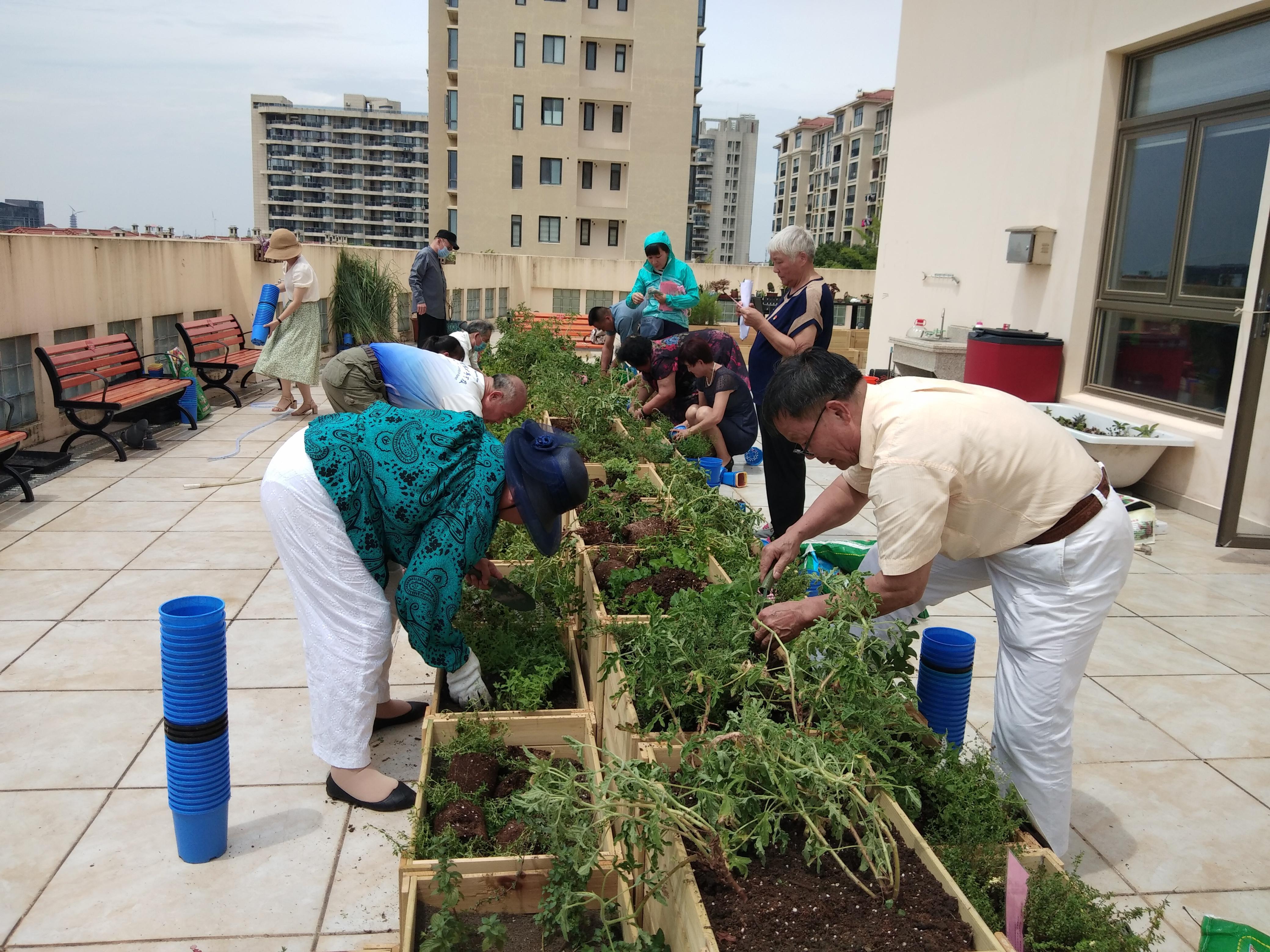 这个花园,建在海棠社区居委会天台。每天,都会有不同面孔的居民们前来看望它。有时,是来为它除草、浇水、耕耘;有时,给它带来了“新朋友”,即移植新花卉进来。说起花园的由来,海棠社区居委书记、主任许立群至今都很感动,“今年年初,我们在走访中发现,辖区不少居民都擅长养花弄草,我们就想说可不可以利用长期闲置的天台搞一个空中花园,方便居民休闲、娱乐、开展活动。”许立群说,今年年初,这个想法,率先得到了社区党员们的支持,“40多位党员,主动发起募捐,一下就筹到了4000多元。”60多岁的顾正喜 ,就是一名社区党员。他说,“现在提倡’人民城市人民建、人民城市为人民’,我觉得,在我们这个小区,参与做这个事,就是最好的体现。”