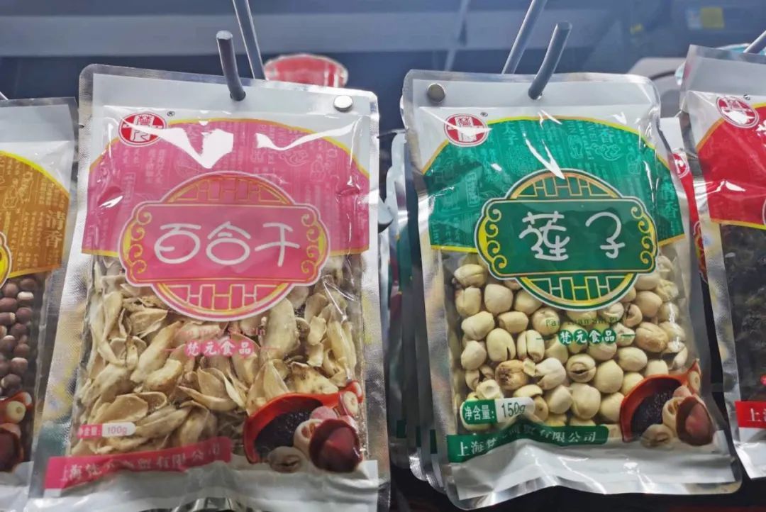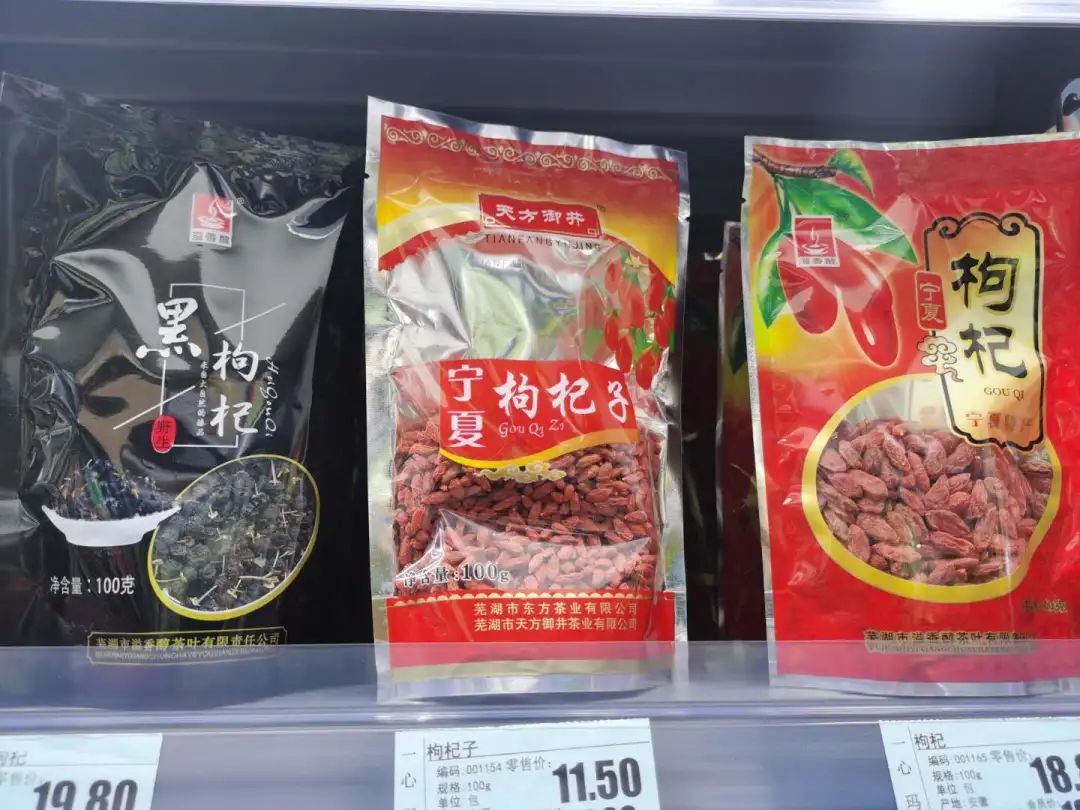 超市里有琳琅满目的干货食品,像秋季里补血养颜的红枣、枸杞都有不少品种,让顾客按喜好挑选,可以搭配银耳、冰糖熬羹。