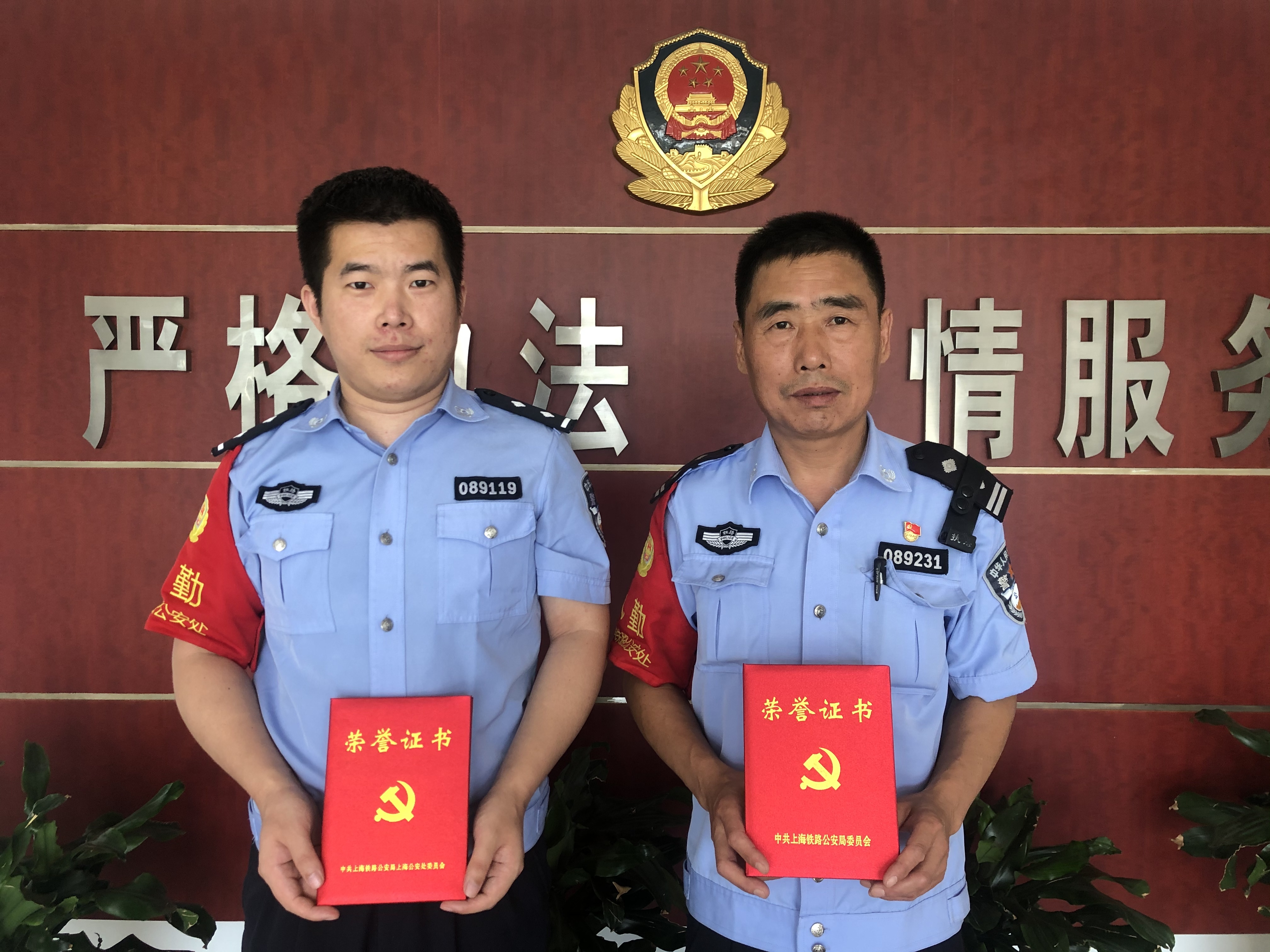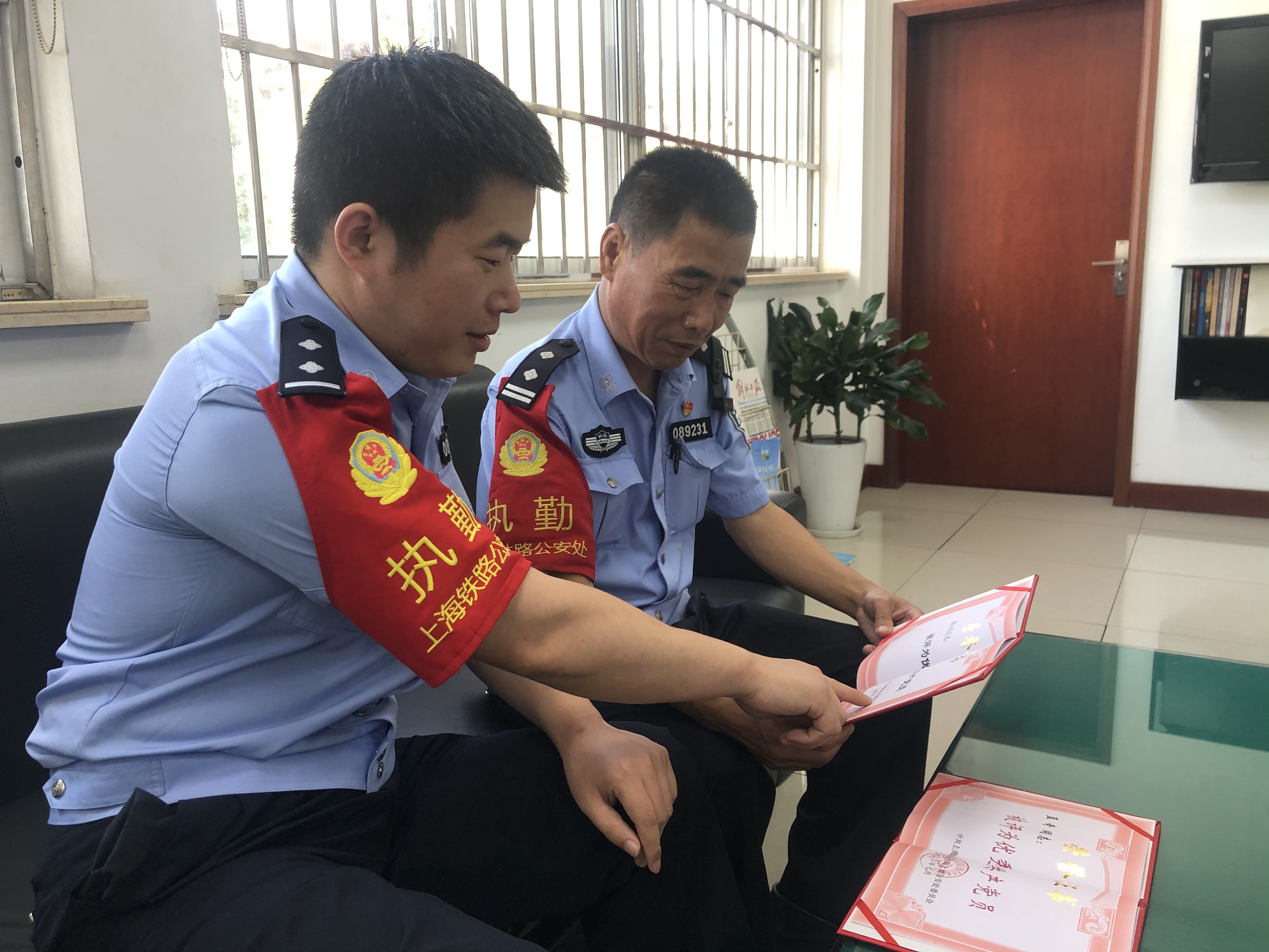 日前,在上海铁路公安处,有一对师徒同时获得上海铁路公安局、上海铁路公安处“优秀共产党员”称号。