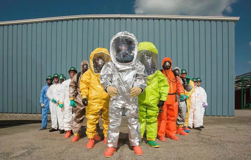杜邦展出的医用一次性防护服,采用杜邦公司专有的Tyvek®防护服材料制作。能够阻隔微细粉尘和液体穿透,同时又能允许水汽透出。能有效防护血液、体液和病菌的侵害。在SARS、Ebola等疫情爆发的时候,被传染病定点医院,各大疾控中心,无国界医生组织等广泛用于传染性介质防护。