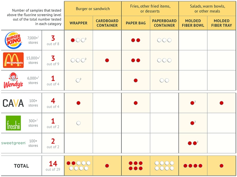 2020年8月6日,美国组织 Safer Chemicals Healthy Families 报道了一项针对3个州、6家快餐公司的29个食品包装样品的氟含量测试报告。此次被抽检公司包括知名的麦当劳和汉堡王等快餐公司。检测结果显示,近一半的食品包装样品中氟含量水平高于筛查水平(100 ppm)。而这一报道在国内同样受到极大的讨论和关注。