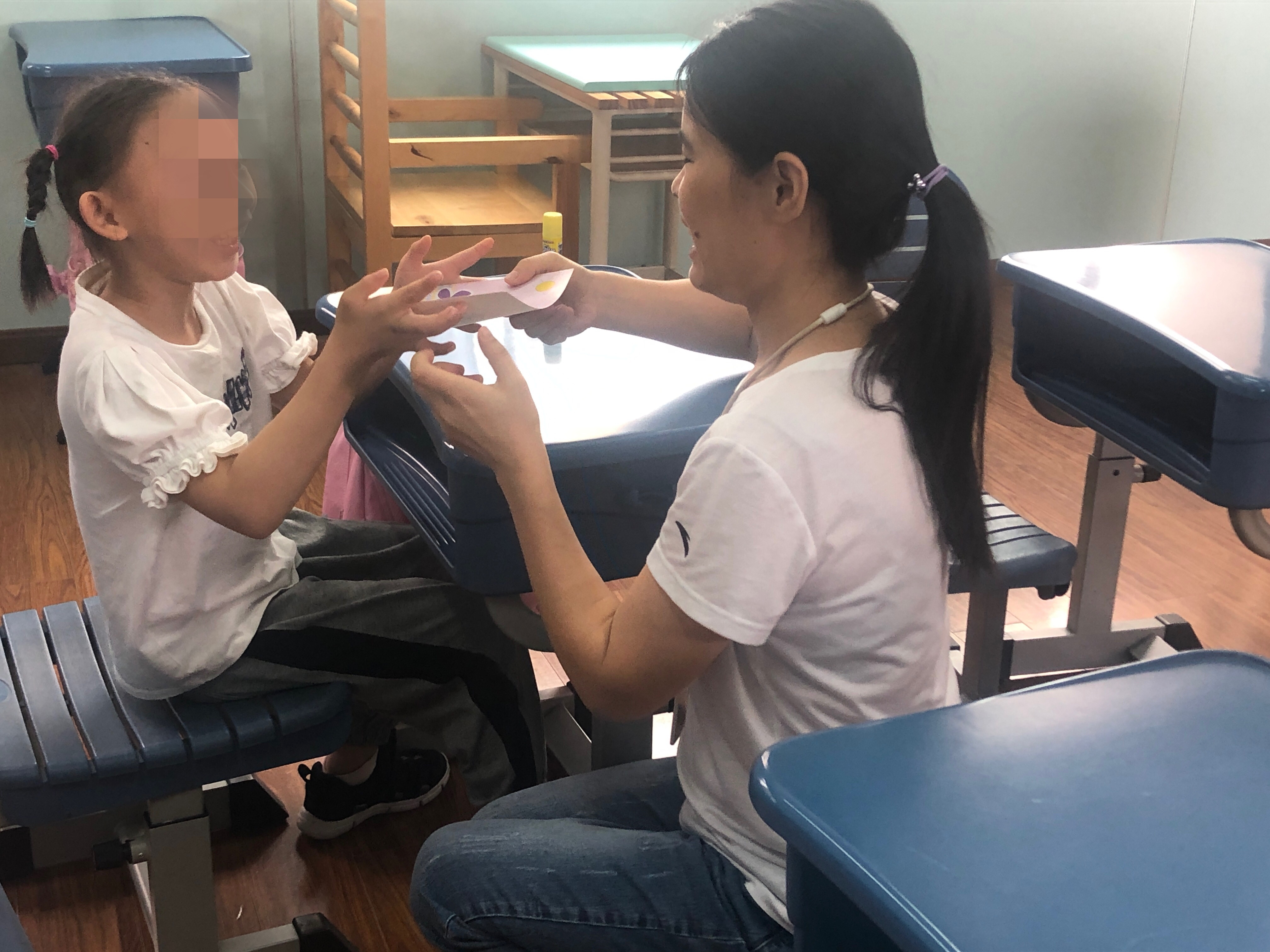 “今天子涵上课很认真,眼睛看老师、耳朵认真听,发言前还会先举手,表现很棒。来,给自己鼓鼓掌。”短短一堂课,孙卿卿重复说了二十几次“棒”、十多次次翘起大拇指、数次和学生击掌,全程面带微笑。她不会轻易批评学生,只要学生做对一次,她就会给予肯定和笑容。
