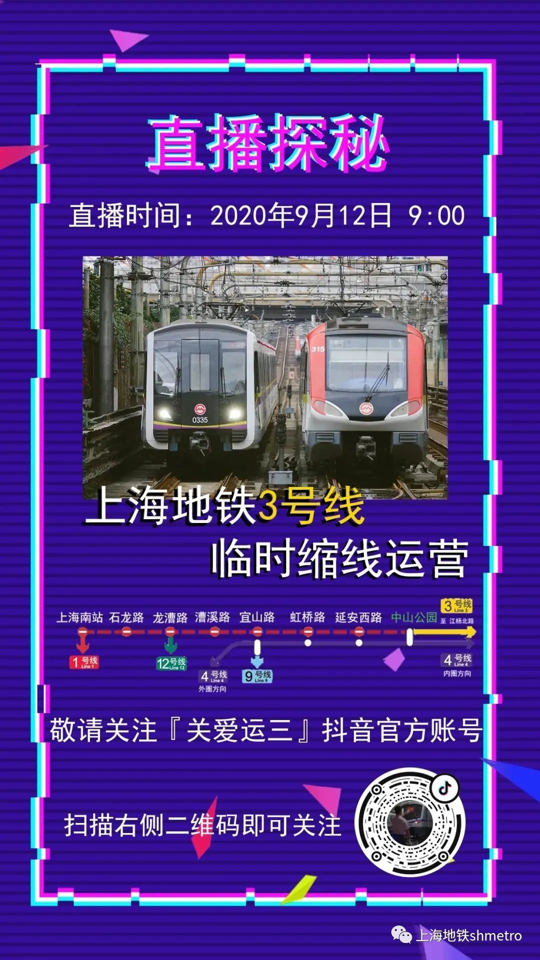 前往3号线上海南站站至中山公园站(不含)区段乘客,出门前请提前规划好您的出行路径,预留足够的出行时间。