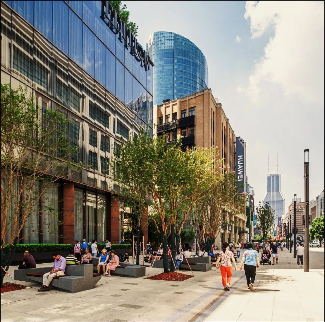 工程充分考虑了东拓段的空间尺度和周边环境布局,通过坚持高站位谋划、高起点设计、高标准施工,致力将步行街打造成一个“国际范、中国魂、海派风”定位的全球卓越国际步行街区。