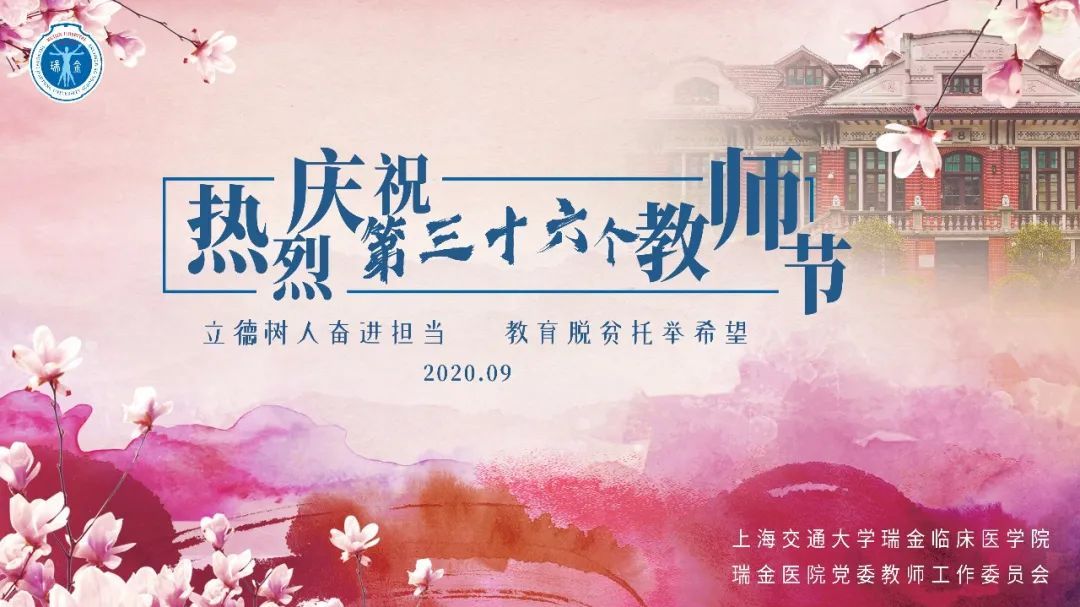 今天下午,瑞金医院第三十六届教师节大会暨第十一届“红烛奖”、2019—2020年度先进教师、先进管理人员、先进导师团队表彰大会隆重举行。