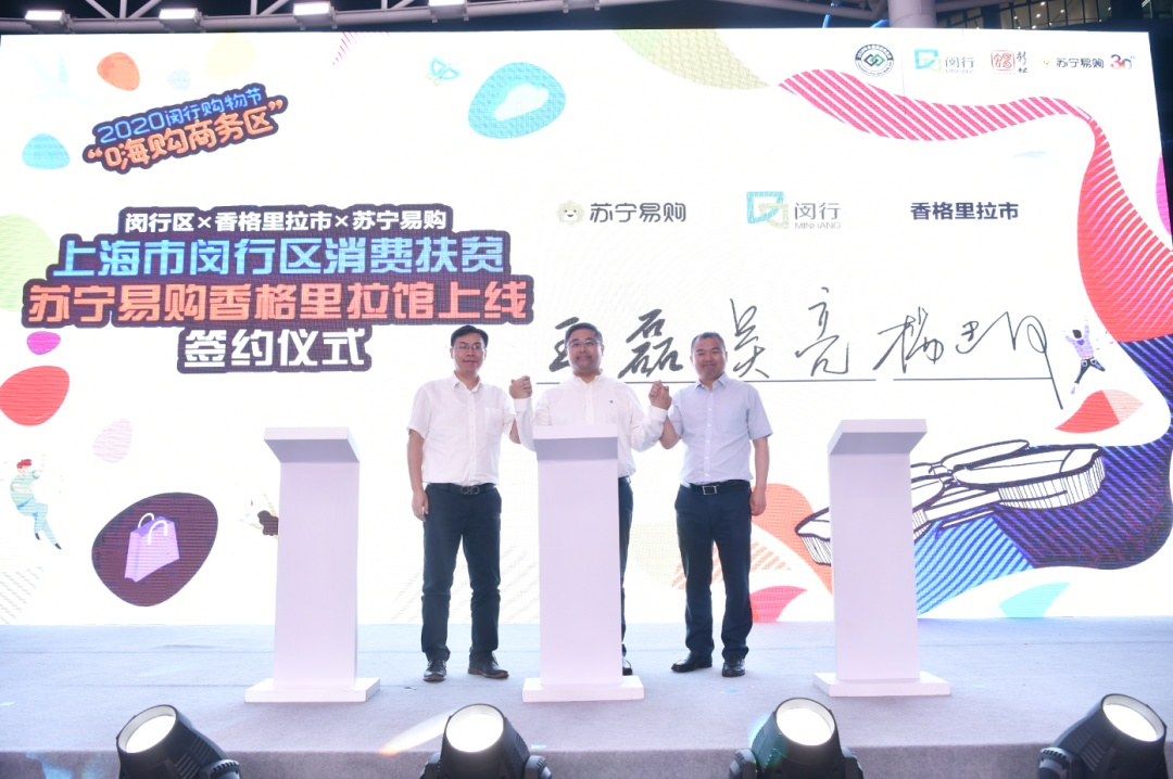 9月11日晚,“相拥进博 趣购新虹” 2020闵行购物节“嗨购商务区”活动启动。闵行区政府将与香格里拉市政府、苏宁易购平台达成战略合作,联合打造“闵行区消费扶贫·苏宁易购香格里拉馆”,助力消费扶贫,通过互联网平台,产自香格里拉农产品将销往全国各地。