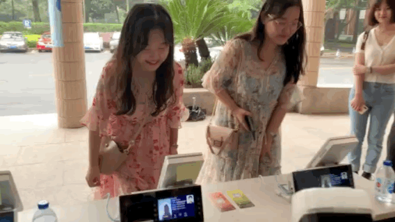 报到时,安苒和安蕾进行人脸验证(刘昕璐 摄)