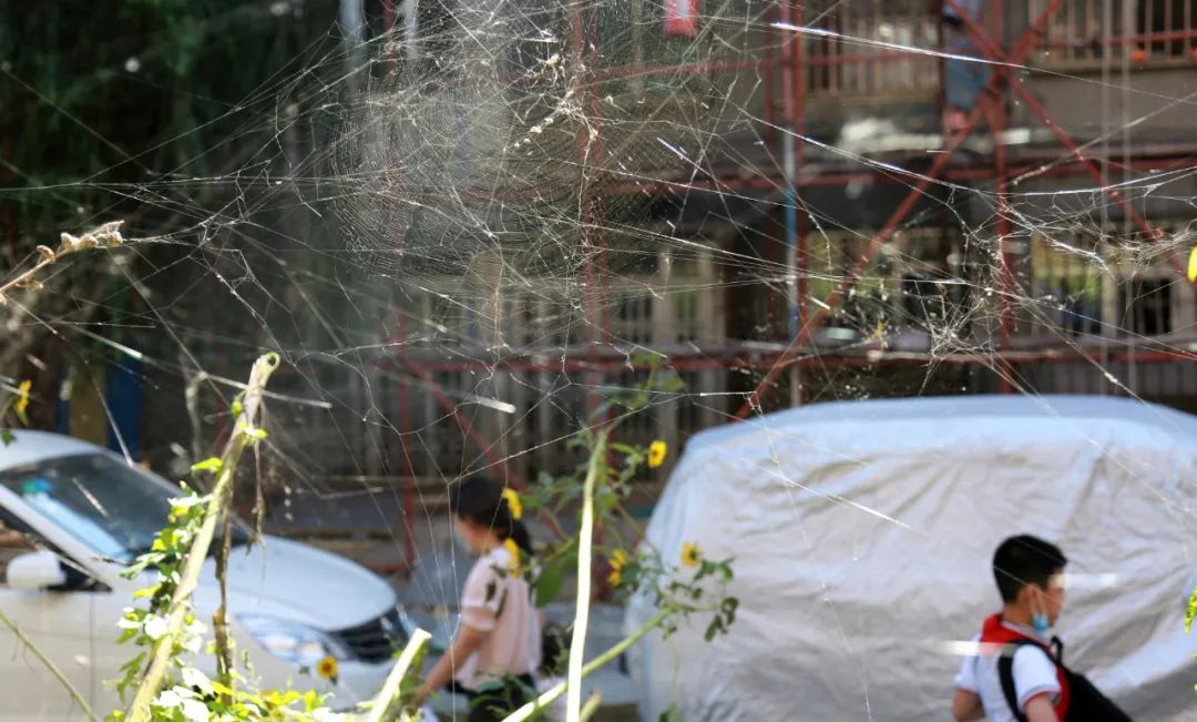 小区绿化带到处都是蜘蛛网