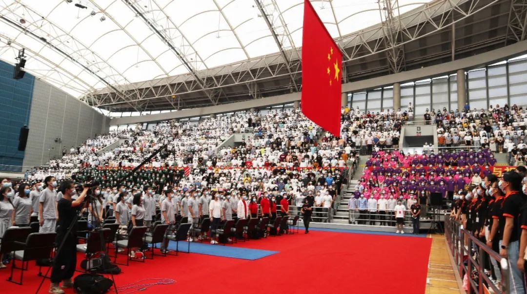 鉴于疫情防控常态化要求,复旦大学本次采用线上线下相结合的方式欢迎新同学。湖北籍学生、研究生和本科生代表约4500人在正大体育馆现场参与典礼,其余未进入正大体育馆的新生由各院系、各校区自行组织分会场同步观看直播。