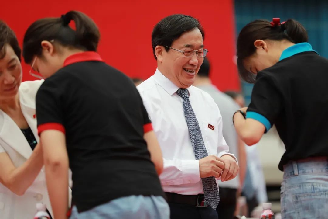 开学典礼结束后,校长许宁生与党委副书记许征、尹冬梅、金海燕,副校长徐雷及相关部门负责人一同前往正大体育馆后场、南区学生生活园区,看望入学新生和返校老生。