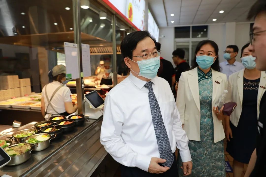 交流结束后,正值中午时分,许宁生一行前往南区食堂春晖餐厅,走访选餐窗口和就餐区,关心饭菜质量,了解学生的就餐需求。