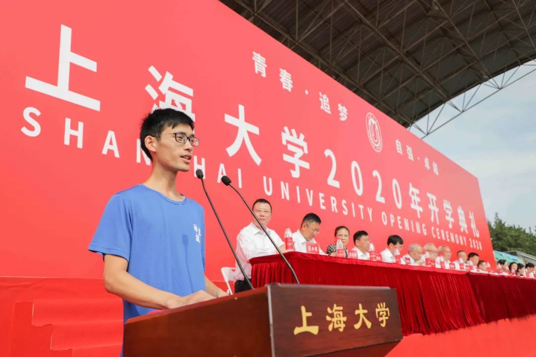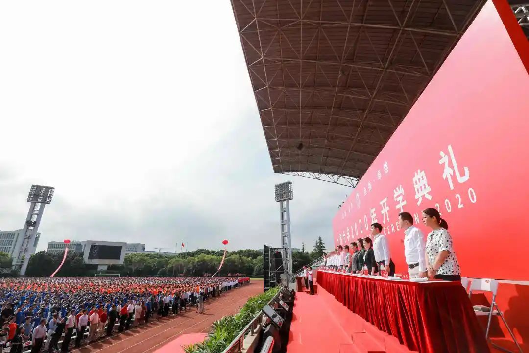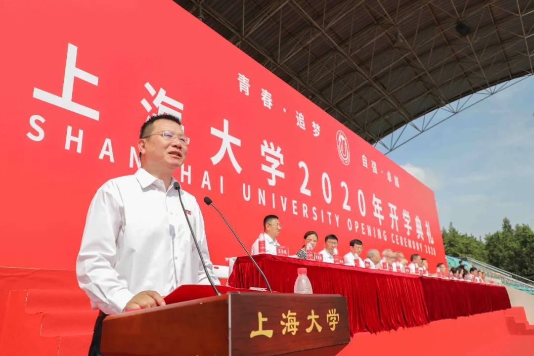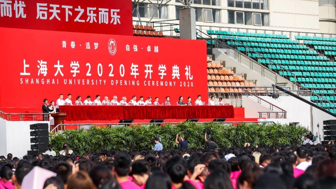 9月13日上午,上海大学举行2020年开学典礼。中国工程院院士孙晋良、刘人怀;上海大学终身教授戴世强、龚振邦、董远达;中国社会学会会长,中国社会科学院—上海市人民政府上海研究院第一副院长李友梅;校领导成旦红、刘昌胜、段勇、龚思怡、欧阳华、吴明红、聂清、汪小帆、苟燕楠、胡大伟、曹为民、张洁,以及来自各部处、各学院和上海大学基础教育集团各成员学校的领导老师与来自五洲四海的1.1万余名2020级本科生、研究生和国际留学生新生,齐聚上海大学校本部体育场,共同见证了一场声势浩大的开学典礼。典礼由副校长汪小帆教授主持。