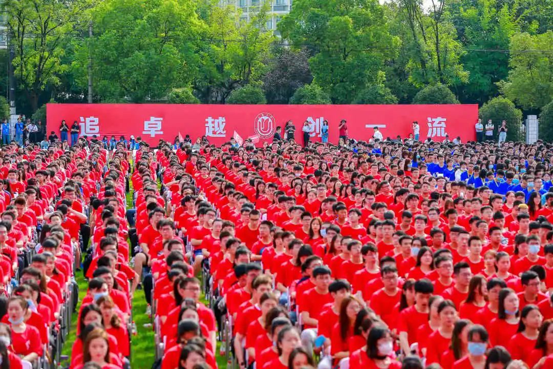 全体新生身着主题分别为“青春”“追梦”“自强”“卓越”八种颜色的服装,带着对学术的执着追求和对未来的美好憧憬,他们即将在上海大学开启一段全新的求学之旅。典礼采用5G无人机室外航拍技术,通过央视频、人民日报人民号、抖音、快手、微博、哔哩哔哩等多家媒体平台面向全国进行视频同步直播。