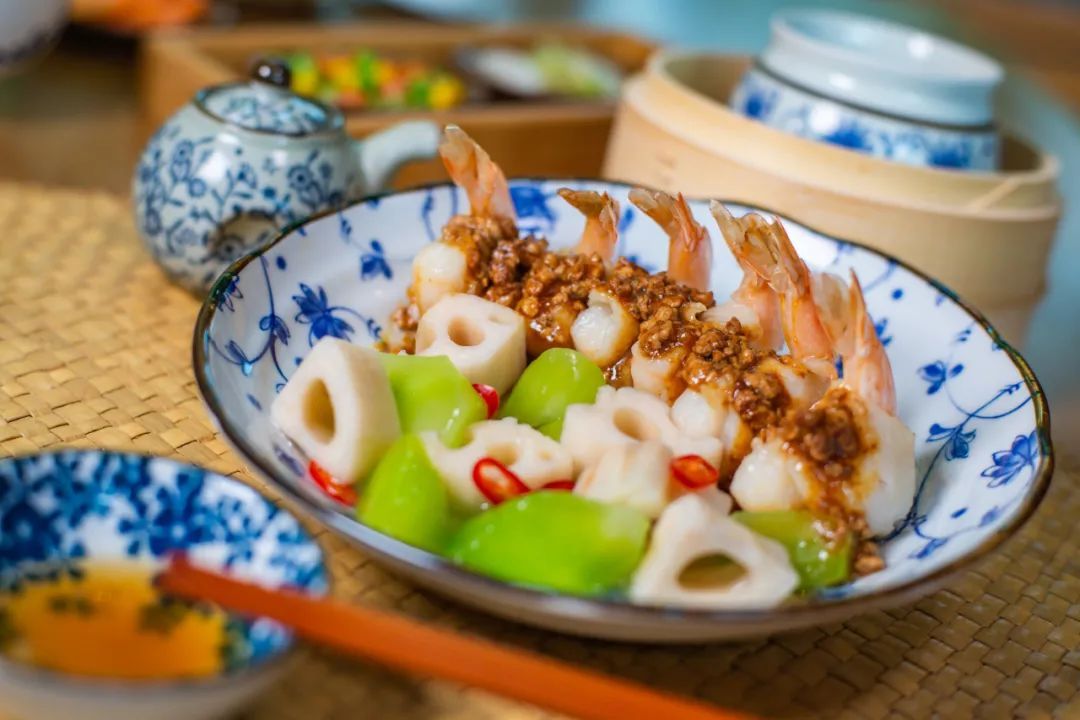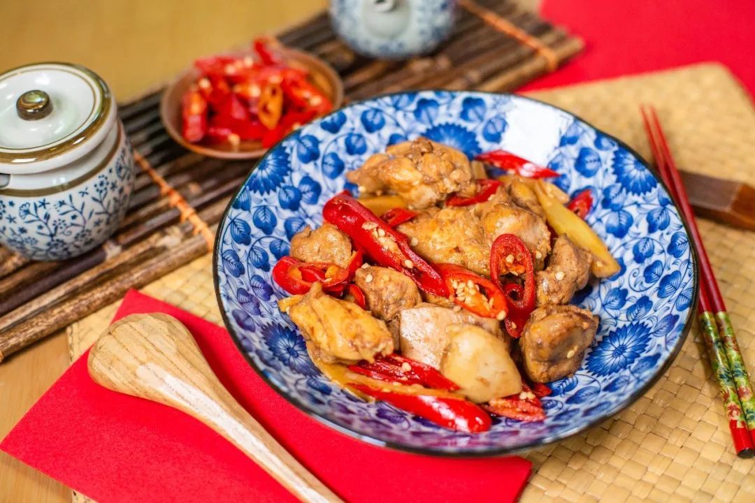 含仔姜炒鸡,蒸大虾鱼柳,胡辣汤等料理,