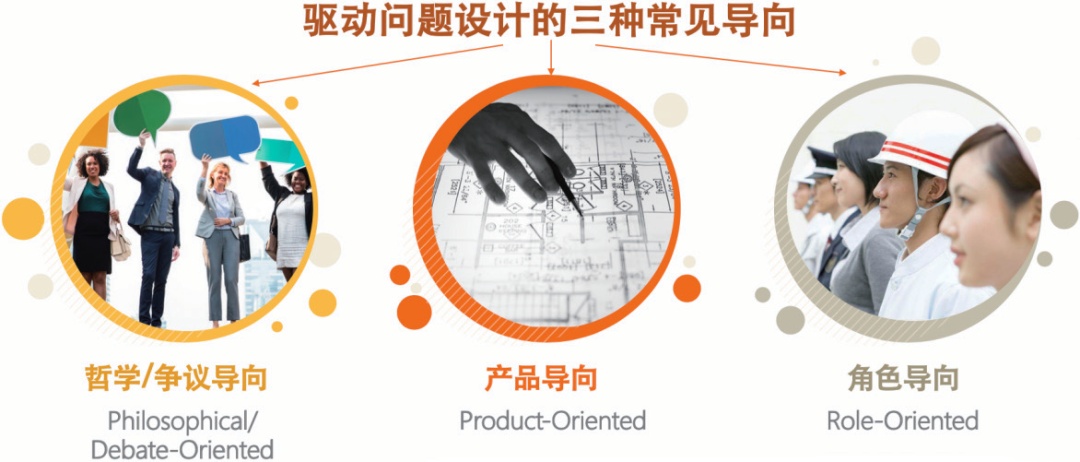 提出一个问题比解决一个问题更重要、也更困难。许多项目式学习的新手教师反映,设计合适的驱动性问题是其教学设计过程中最难攻克的一环。为了给教师提供灵感来源,美国巴克教育研究院的PBLWORKS 团队开发了PBL 项目库,目前已有65 份精品项目可供参考。安德鲁• 米勒将这些项目的驱动性问题分为常见的三类:哲学/ 争议导向、产品导向与角色导向。这三种导向的分类提供了驱动问题设计的三种设计思路。