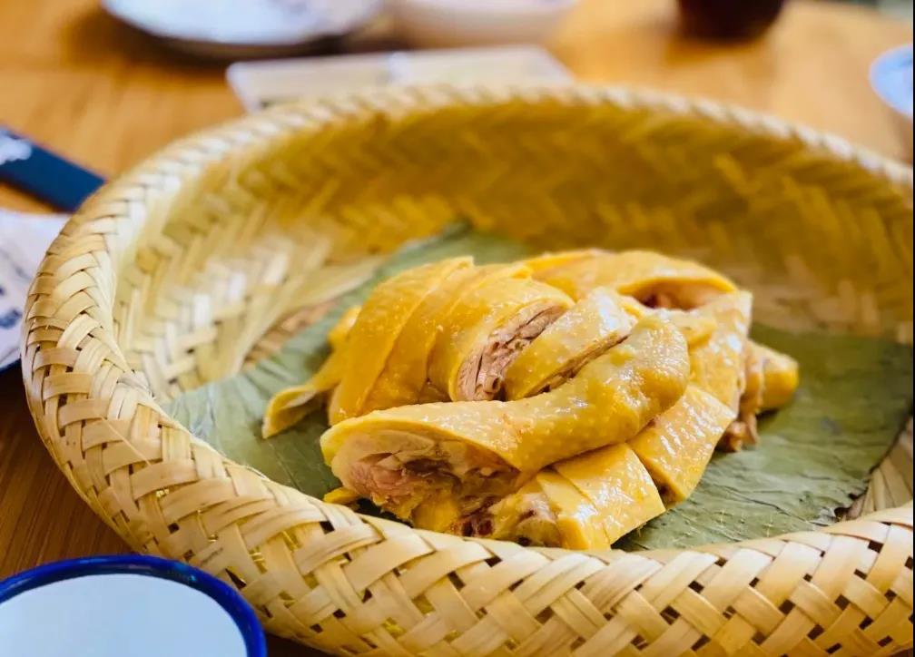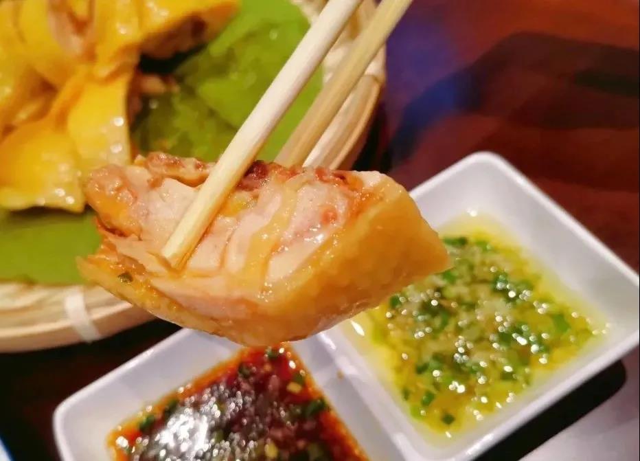 它家的【招牌本帮白斩鸡】鸡皮金黄而不肥腻,放入口中慢慢咀嚼,鲜香肉嫩,回味有一丝丝的鲜咸味……蘸上酱料,口感更好!