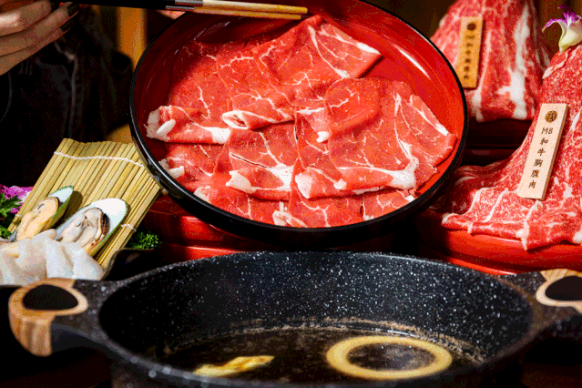 它家的寿喜烧在内容和做法上都极为纯粹,旨在还原本味。牛肉都是从澳洲低温冷链直供,食材都很新鲜,寿喜烧汤汁略带一点甜味,给涮肉更增添了一分鲜味。