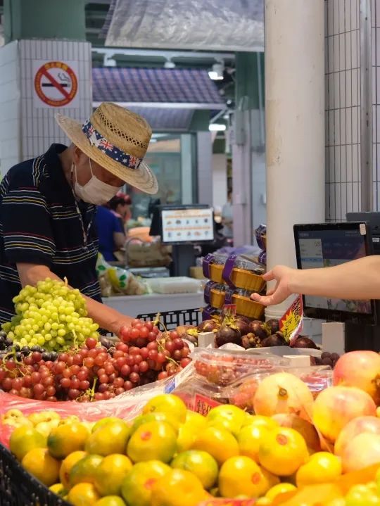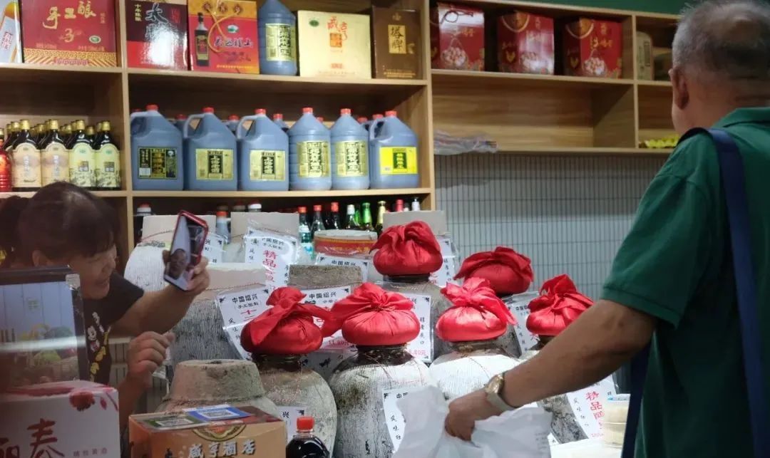 菜场内还增加了以往没有的酱菜和水果摊位,令人惊喜的还有零拷黄酒服务。
