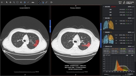 该方案基于人工智能技术,从成像、筛查、诊断到随访,以AI全栈助力抗“疫”。uAI新冠肺炎智能辅助分析系统通过高敏感度检测与分类算法,提升病灶检出率,辅助筛查疑似病患,对新冠病毒感染病灶勾画重合率超过90%,全肺感染百分比量化误差小于1%,可将5至10分钟的CT阅片时间缩短至1分钟以内。