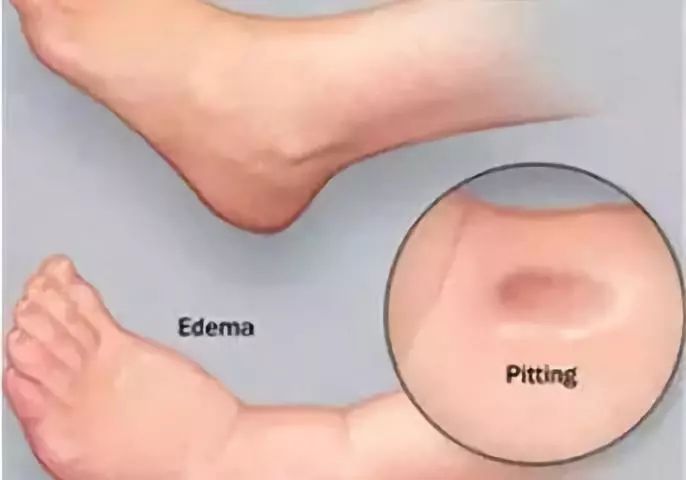 ★ 心源性水肿:是右心衰的表现,水肿首先出现于足部,可向上延及全身,常伴有颈静脉怒张、肝肿大等表现。