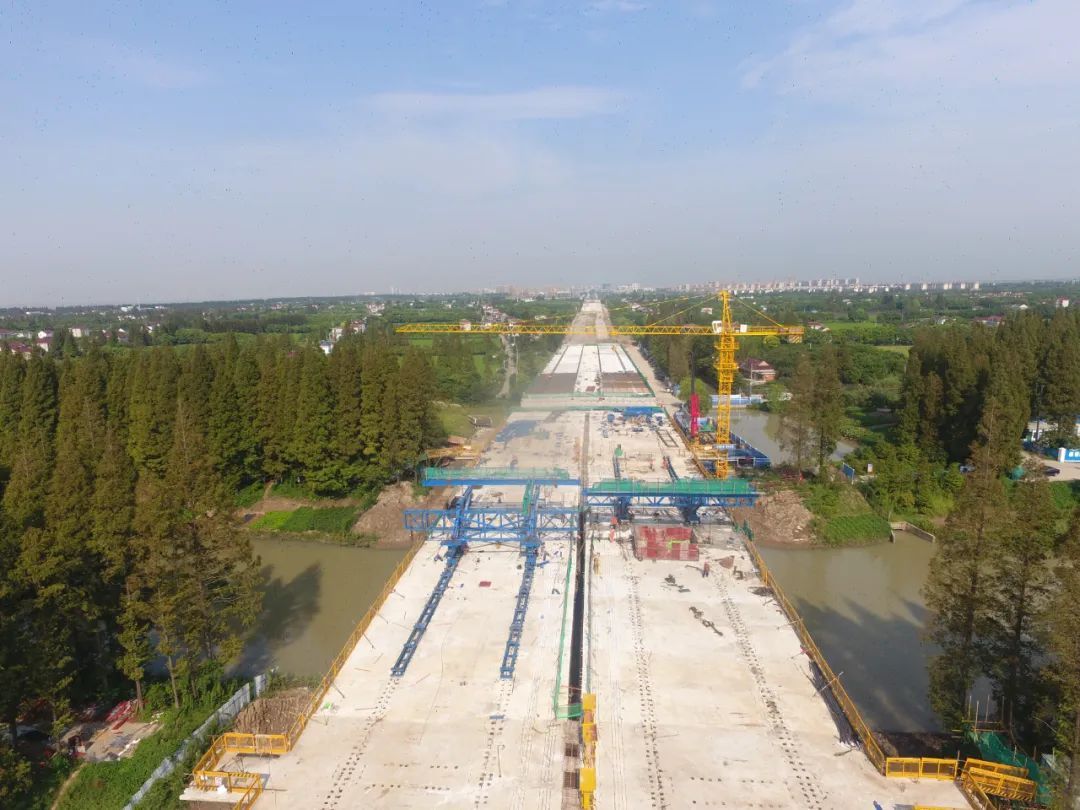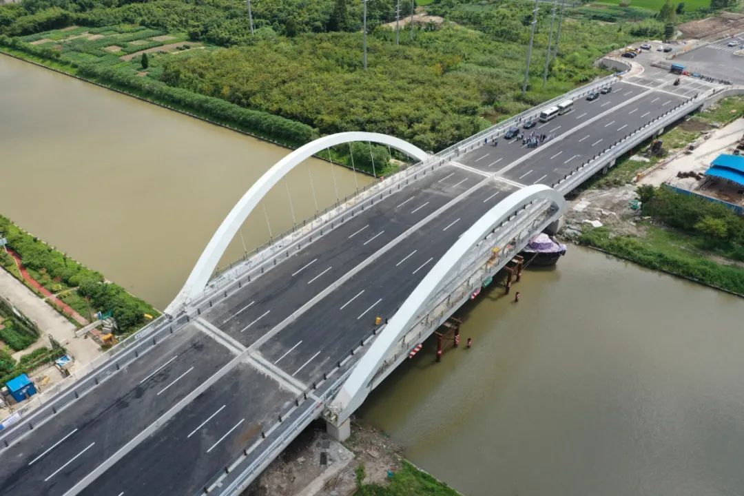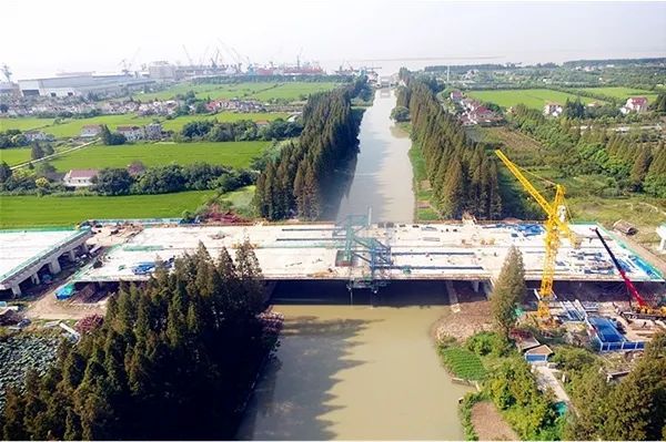 崇明生态大道1标新建工程张网港桥实现合龙,标志该区域内11座桥全部贯通。