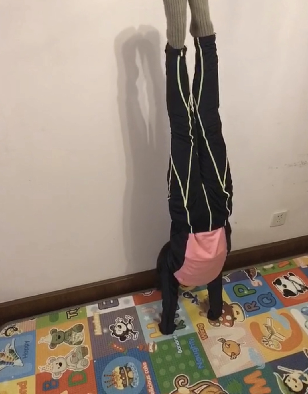 在家找到一面墙就可以练习倒立啦!墙倒立,提倒立,头倒立等等,倒立练习是跳水入水压水花的关键,作为最佳的辅助练习,倒立的训练多多益善。