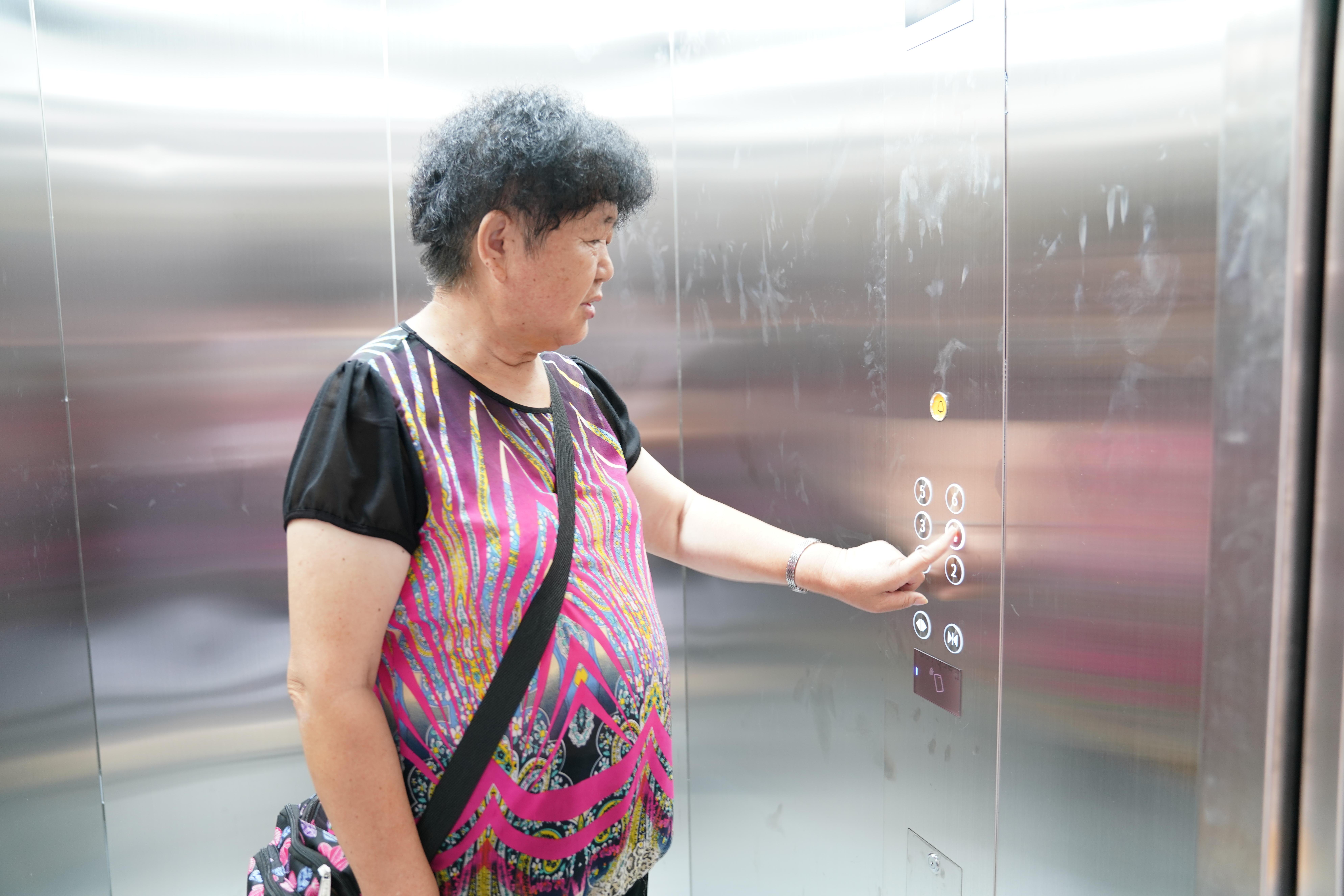 在短暂的竣工交付仪式后,住在4楼的卫阿姨就迫不及待地来体验这部电梯的便捷。卫阿姨和老伴儿是3号楼里年纪最大的一户家庭,以前,上下楼特别吃力。“现在方便了, 以前每天下楼一趟或者两趟, 现在要上下四五趟了, 去门卫坐坐 ,或者外面兜一圈。”