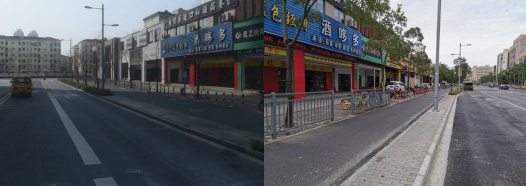 国安路三门路公交港湾式车站改造前/改造后
