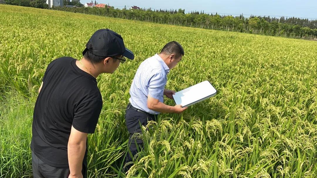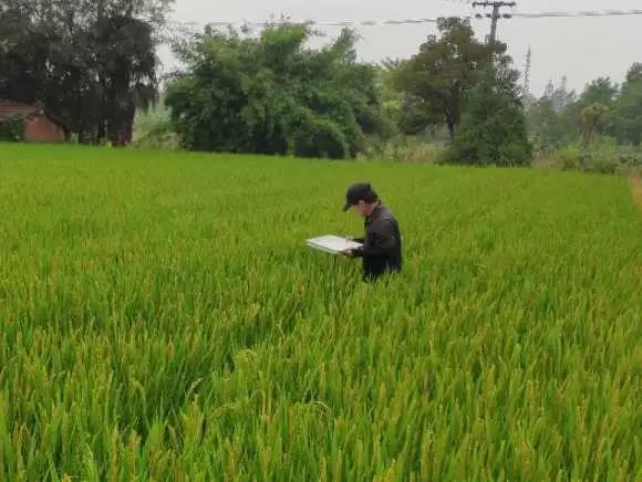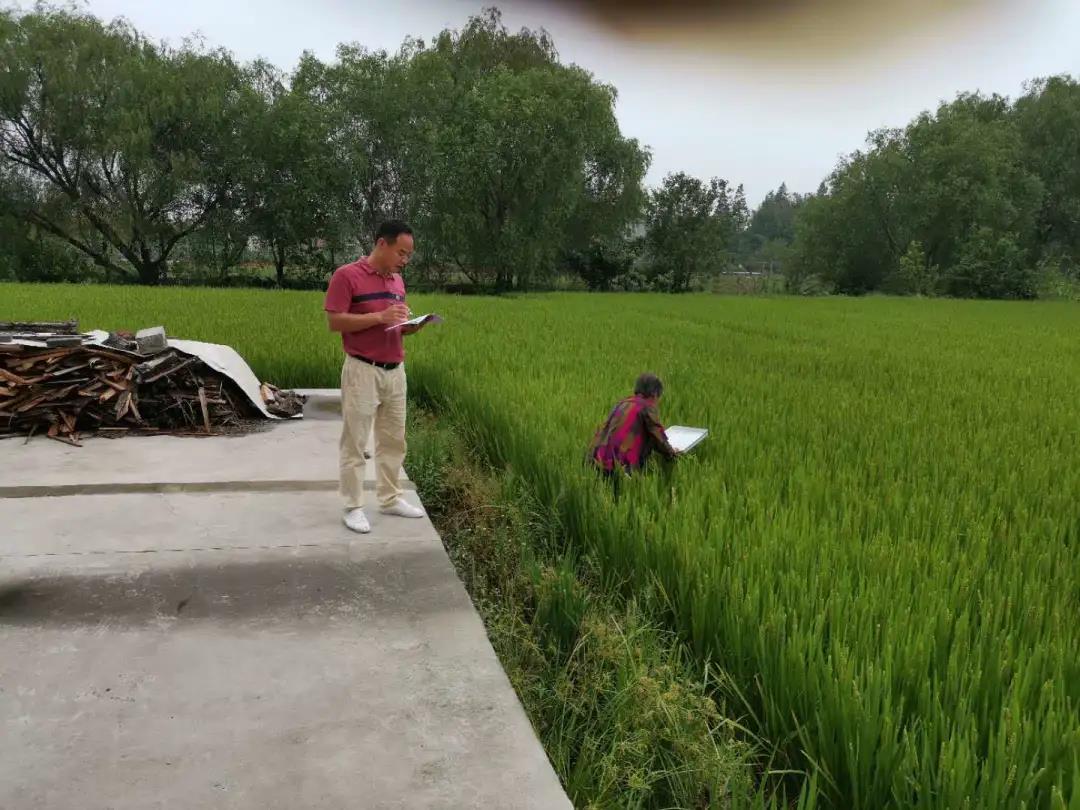 党委副书记、镇长汤学锋现场查勘稻飞虱情况