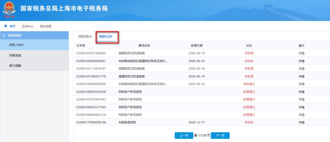 点击“我的已办”,可查看已完成纳税人端操作的涉税事项。