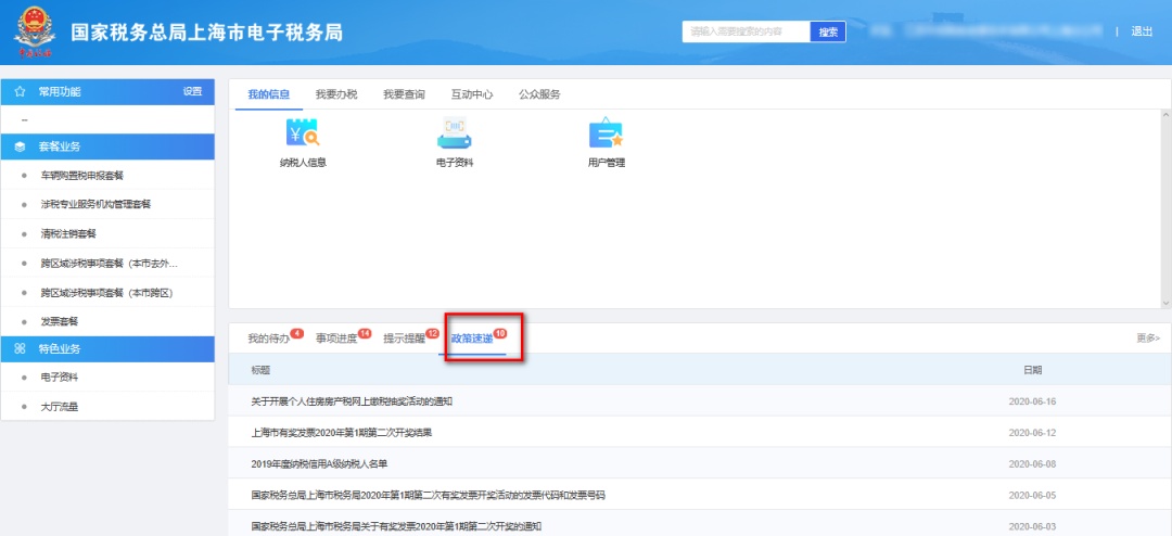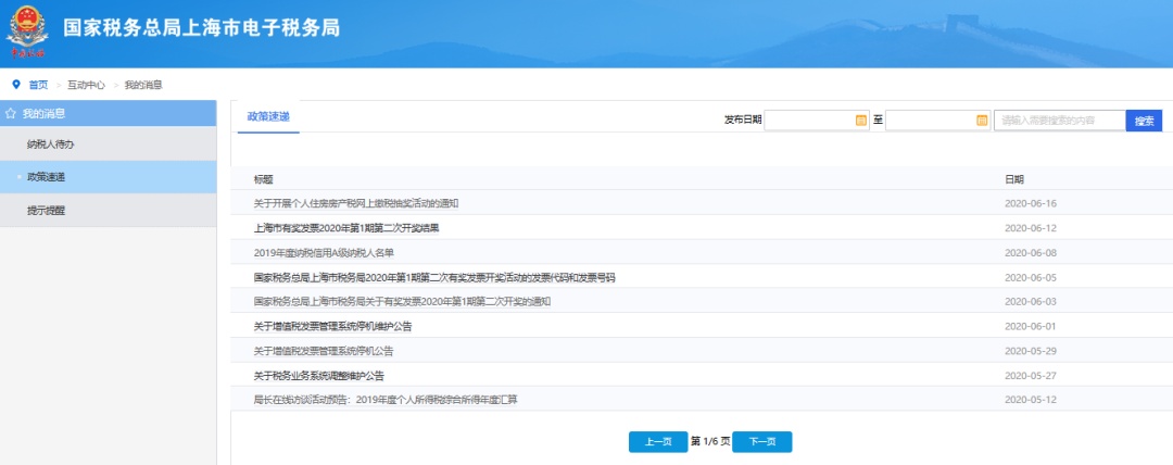 电子税务局——互动中心——我的消息——政策速递