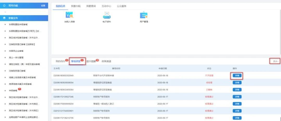电子税务局——事项进度