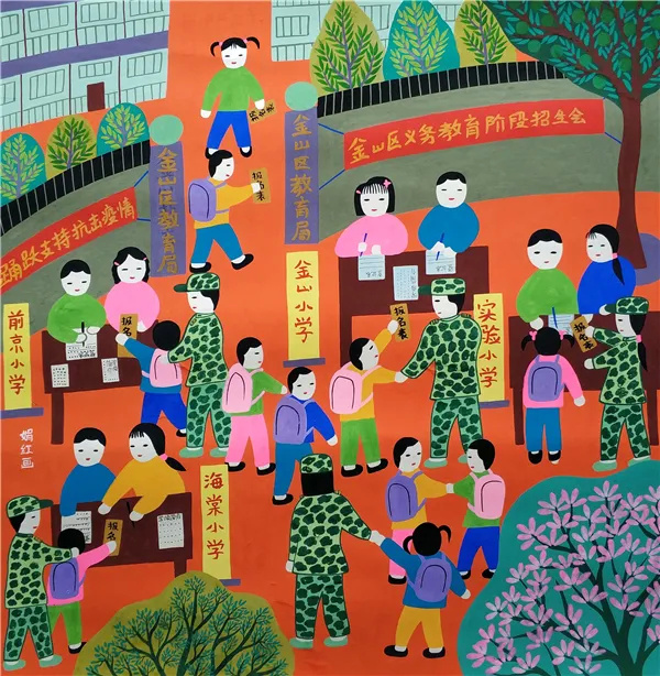 上海市金山区实施顶层设计,全力推进双拥模范城创建工作。坚持特色化推进、精细化运行,固化双拥品牌项目。形成并确定了2020年金山区双拥实施项目55项。以实事项目的项目化运作形式,将双拥工作的两张清单切实落实推进。金山区退役军人事务局联合中国农民画村以金山农民画的形式创作了《金山区双拥特色工作》系列画作20幅,描绘了金山双拥特色工作的缩影,将国防和双拥知识宣传于润物于无声。