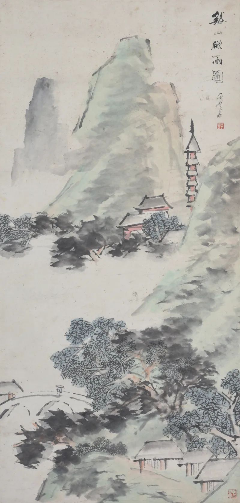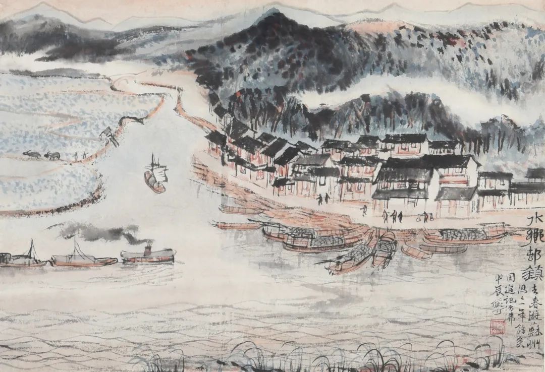 陆俨少 水乡村镇图