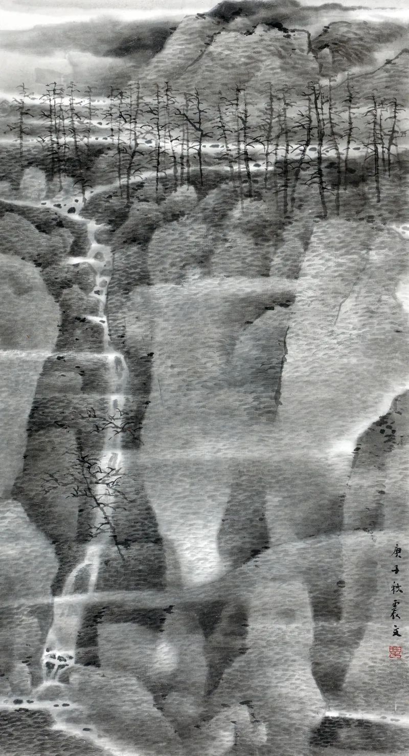 萧海春 飞瀑苍崖图